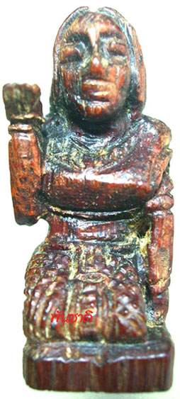 นางกวักไม้แกะที่เห็นนี้ขนาด 1.5x3.5 ซม.ห้อยคอก็ได้ ตั้งบูชาก็ดี ลงรักน้ำเกลี้ยง ถ้าหากดูตามศิลป์ตามความเก่าเป็นไปได้ว่าจะเป็นนางกวักหลวงบุญวัดกลางบางแก้วครับ |