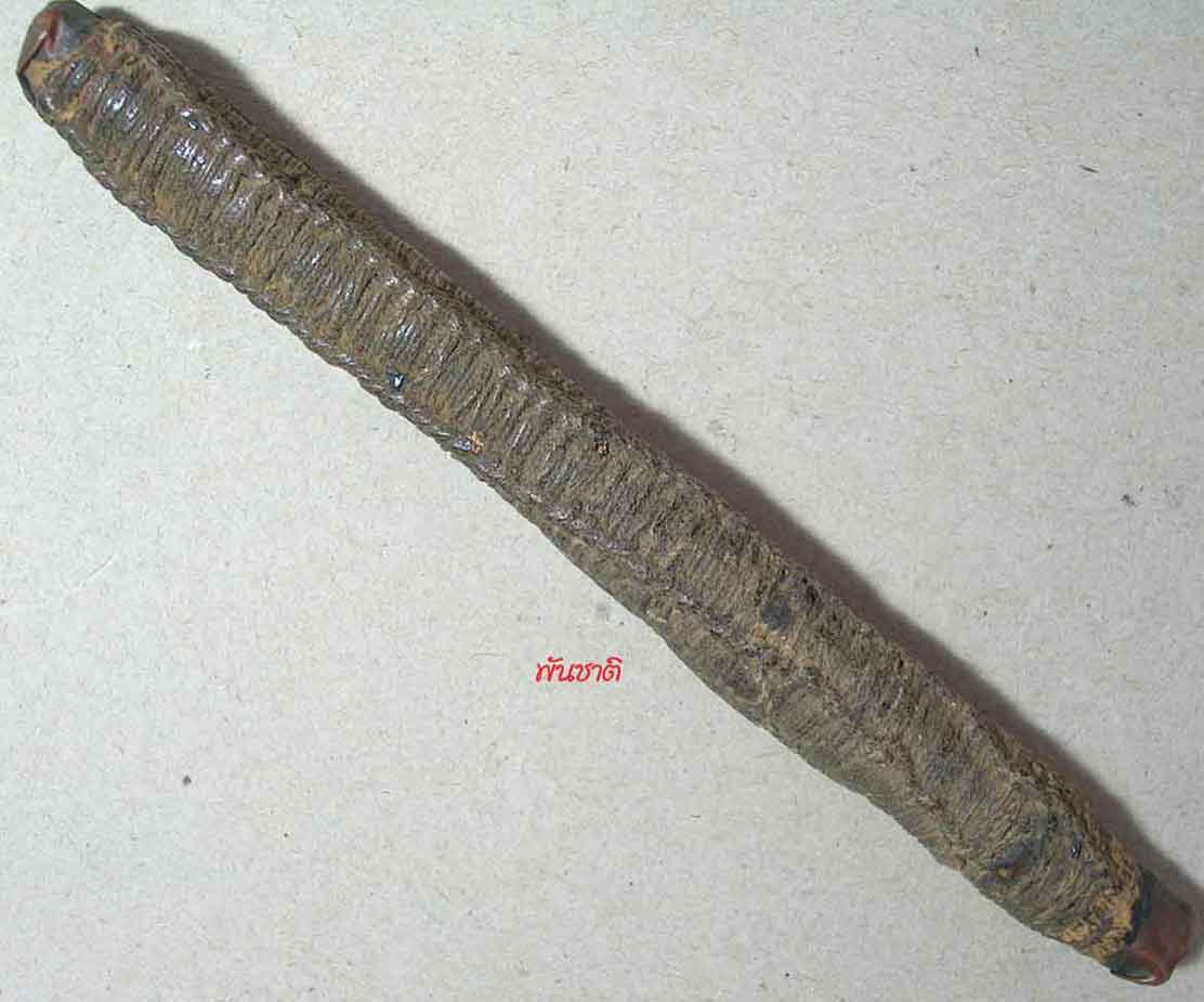 ตะกรุดดอกนี้ดูตามความเก่าอายุมากกว่า 70 ปี ลักษณะการถักเชือกลงรักปิดทองเดิมๆ ลายถักขึ้น 4 เสาโยงหัวท้ายแบบนี้รวมทั้งขนาด 4.5 นิ้วเป้นเอกลักษณะเฉพาะของหลวงพ่อกลั่นวัดพระญาติครับ