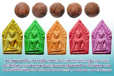 พระขุนแผนเคลือบหลวงปู่ทิม วัดพระขาว รุ่นนี้หลวงปู่ทิมวัดพระขาว เมตตาให้คณะกรรมการจัดสร้างขึ้น เพื่อมอบเป็นสิริมงคลแด่ท่านที่ร่วมทำบุญสร้างบารมีร่วมกับหลวงปู่ทิมท่าน ในวันอาทิตย์ที่ ๒ พฤศจิกายน ๒๕๕๑ ในวาระที่ท่านบำเพ็ญกุศลเป็นประธานทอดกฐิน ณ วัดโล่ห์สุทธาวาส จังหวัดอ่างทอง ซึ่งปัจจัยทุกบาททุกสตางค์ หลวงปู่ทิมท่านเมตตามอบให้กับทางวัดโล่ห์สุทธาวาส เพื่อนำไปดำเนินการสร้างอุโบสถหลังใหม่ ซึ่งกำลังสร้างอยู่และยังไม่แล้วเสร็จให้สำเร็จลุล่วงในโอกาสต่อไป (วัดโล่ห์ฯนี้หลวงปู่ทิมท่านเมตตาอุปถัมน์อยู่ และท่านเจ้าอาวาสก็เป็นลูกศิษย์ของท่าน) สำหรับขุนแผนเคลือบหลวงปู่ทิมนี้ รับรองว่าไม่มีเปิดจองตามศูนย์พระเครื่องอย่างแน่นอน เพราะเป็นงานบุญล้วนๆ และก็สร้างจำนวนไม่มาก หมดแล้วหมดเลยครับ กำหนดรับพระเริ่มตั้งแต่วันที่ ๒๒ มิถุนายน เป็นต้นไป(ทางวัดจะทยอดจัดส่งให้แก่ผู้จองล่วงหน้า) และสำหรับผุ้จองล่วงหน้ากับทางวัดโล่ห์ฯโดยตรง ก็จะได้รับลูกอมชานหมากหัวใจพระสีวลี ของหลวงปู่ทิมเพิ่มอีกเป็นพิเศษ(เฉพาะผู้จองล่วงหน้า) สำหรับพระขุนแผนเคลือบหลวงปู่ทิม วัดพระขาว นี้ท่านจะเมตตาปลุกเสกเดี่ยวให้มากถึงสามครั้งครา จึงสามารถมั่นใจในพุทธคุณที่มีอยู่ในองค์พระ สามารถดูรายละเอียดได้ที่เว๊ปของทางวัดครับ www.watlo.net เบอร์โทรของวัด 035-611778 , เบอร์ที่เจ้าหน้าที่ให้ข้อมูลได้ชัดเจน 08-1853-5483.....ขอขอบคุณมากครับที่สอบถามมา.......ครับผม |
