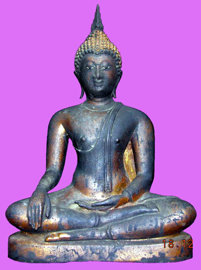 - องค์ที่สองล้อศิลปสุโขทัย ใต้ฐานเป็นดินไทยแบบพระบูชารัชกาล ความเก่าก็น่าจะ ๕๐ ปีขึ้น