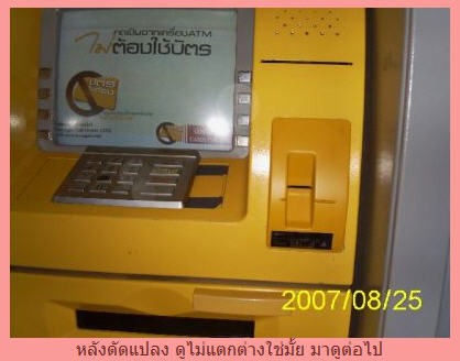 ดังนั้น ก่อนทำรายการใด รบกวนท่านสังเกตความผิดปกติของตู้ ATM ด้วยว่าแป้นกดมีลักษณะไม่น่าไว้วางใจ เช่น เป็นกล่องนูนขึ้นมาอย่างผิดสังเกต หรือที่ช่องรับบัตรมีความผิดปกติของอุปกรณ์ เช่น สีเพี้ยน หรือลักษณะเหมือนมีอะไรมาแปะติดเพิ่ม