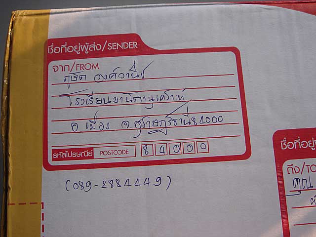 หลังจากสงบสติ อารมณ์ ได้สักพัก ย่องเข้าไปดูใกล้ๆ ส่งมาจากสุราษฏร์ธานี เท่านั้นแหละ หัวใจพองโตขึ้นมาทันที พี่หนุมานภูนี่เอง ที่ส่ง CD อนุรักษ์พลังงานมาให้ แต่ไหง..กล่องใหญ่จัง แกะมาดังที่เห็นตามรูป มีสุดยอดไข่เค็ม ฝากมาด้วย