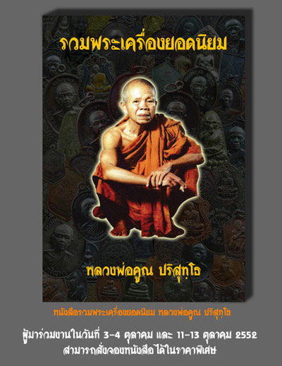 วัน อาทิตย์ที่ 11 ตุลาคม 2552 เวลา 8.00 น. – 15.00 น. เชิญชมนิทรรศการพระบูชา พระเครื่อง และวัตถุมงคลต่างๆ ของหลวงพ่อคูณ ปริสุทฺโธ