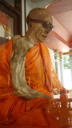 เอเชียก็มีมัมมี่ เป็นมัมมี่ที่น่าพิศวง ยิ่งกว่า แตกต่างยิ่งนัก เพราะเป็นเรื่องของพลัง จิต เป็นศาสตร์แห่งโลกตะวันออกที่ วิทยาศาสตร์ ยังยากจะอธิบาย เช่น ร่างของ หลวงพ่อแดง ปิยสีโล แห่งวัดคุณาราม เกาะสมุย จ.สุราษฎร์ธานี ที่หลังจากมรณภาพ แล้ว ไม่ได้ผ่านกรรมวิธีทางวิทยาศาสตร์ใดๆ ท่ามกลางสภาพแวดล้อมที่มีความชื้นสูง กลับไม่เน่าสลาย! ความน่าพิศวงดังกล่าวทำให้ รอน เบ็คเก็ต และ เจอรัลด์ คอนล็อก สองศาสตราจารย์มหาวิทยาลัยควินนิเปก ในเมืองแฮมเดน มลรัฐคอนเนกติกัต ผู้ซึ่งนำเอาวิทยาการทางการแพทย ์สมัยใหม่และ ความล้ำหน้า ของเทคนิคต่างๆ มาไขเรื่องราวที่ถูกฝังไปพร้อมกับ มัมมี่ทั่วโลก รีบรุดเข้าพิสูจน์ร่างที่ไม่เน่าของ หลวงพ่อแดง ทางวัดเองก็ให้ความร่วมมือเป็นอย่างดี โดยวางเงื่อนไขเพียงให้ขอขมา ด้วยดอกไม้ ธูปเทียน ก่อนทำการพิสูจน์ และห้ามทำการใดๆ ให้ร่างของหลวงพ่อแดง เสียหาย ทั้งสองเริ่มกระบวนการพิสูจน์เมื่อ สิงหาคมปีที่แล้ว โดยเอกซเรย์ส่วนของศีรษะ และลำตัว เพื่อตรวจดูความสมบูรณ์ของ อวัยวะภายใน นอกจากนี้ก็นำ endoscope คือท่อขนาดจิ๋ว มีความยืดหยุ่นสูง ส่วนปลายติดกล้องถ่ายวิดีโอขนาดเล็กมาก ใส่เข้าไปทางช่องระหว่างฟัน เพื่อสำรวจอวัยวะภายใน รอน อธิบายถึงกระบวนการเป็นมัมมี่ว่า "เวลาที่เราพูดถึงมัมมี่ เราจะพูดถึงแบคทีเรียตัวหนึ่งที่เป็นสาเหตุให้ ร่างกายเน่าสลาย การทำมัมมี่จึงมักใช้วิธีการฆ่าแบคทีเรียตัวนี้ ทำให้ไม่มีตัวย่อยสลายเนื้อเยื่อ ร่างกายนั้นก็จะแห้งลงโดยธรรมชาติ แต่มัมมี่ที่อื่นที่เห็นมาจะต่างจาก หลวงพ่อแดงซึ่งดูเหมือน จริง มาก หลังจากพิสูจน์แล้ว เราประหลาดใจมากเพราะทุกส่วนยังคงสภาพดีมากๆ ไม่ว่าจะเป็นผิวหนังที่เหมือนผิวคน ที่ค่อยๆ แห้งไปแบบธรรมชาติ สมองก็หดตัวเพียง 20% ส่วนอวัยวะภายในเท่าที่เอกซเรย์พบว่ายังอยู่ครบ ไม่ว่าจะเป็นหัวใจ ปอด ตับ ฯลฯ เพียงแต่มันแห้งลง และหดตัวนิดหน่อย" ลักษณะการหดตัวของผิวหนัง นี่เองที่ใช้อธิบายว่าทำไม มัมมี่บางร่างไม่เพียงไม่เน่าสลาย แต่เส้นผมและเล็บก็ยาวขึ้นด้วย รวมทั้งลักษณะของปากที่เมื่อนานไปปากที่เคยปิดสนิท กลับค่อยๆ เผยอออก ศาสตราจารย์จากมหาวิทยาลัยควินนิเปกรอน อธิบายอีกว่า ขณะ นี้ยังไม่สามารถสรุปถึงสาเหตุของการไม่เน่า สลายของหลวง พ่อแดงได้ เพราะทำได้เพียงเอกซเรย์และ ส่องกล้อง ถ้าได้เส้นผมหรือชิ้นอวัยวะไปพิสูจน์ตาม กระบวนการทางวิทยาศาสตร์จะทราบผลแน่นอน แต่เท่าที่ สันนิษฐาน เบื้องต้นคาดว่า เป็นเพราะการอด อาหารอดน้ำนานถึง 15 วัน ทำให้แบค