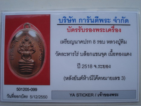 **เป็นบัตรรับรองพระเครื่องแบบตลอดชีพ หากบัตรรับรองหาย ค่อยทำบัตรใบใหม่ครับเจ้านาย  |