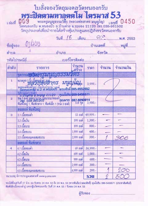 ขอชื๋อ ที่อยู่ คุณกุ้งแห้ง ด้วยนะครับ ส่วน คุณblack มีแล้วครับ จะจัดส่งให้หลังวันที่ 24 ตุลาคม 53 นะครับ(รอพระออกครับ)