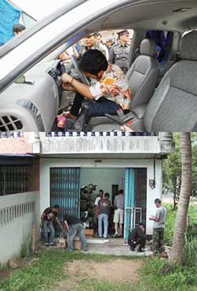นอกจากนี้ ตำรวจเมืองแปดริ้วยังประสานไปยังตำรวจสภ.หาดใหญ่ จ.สงขลา ให้เข้าตรวจค้นบ้านเลขที่ 30/11 หมู่ 1 ต.คลองแห อ.หาด ใหญ่ จ.สงขลา ซึ่งเป็นอาคารพาณิชย์ 2ชั้นตามคำให้การของนายต๋องว่า ที่นั่นเป็นโกดังเก็บชิ้นส่วนรถที่ถูกโจร กรรม พอไปถึงก็ต้องตะลึงเมื่อพบชิ้นส่วนรถยนต์โดยเฉพาะยี่ห้ออีซูซุ โตโยต้า รุ่นวีโก้ และเชฟโรเลต ถูกชำแหละกองไว้ไม่ต่ำกว่า 10 คัน ป้ายทะเบียนรถอีก 20 แผ่น จึงยึดเป็นของกลาง