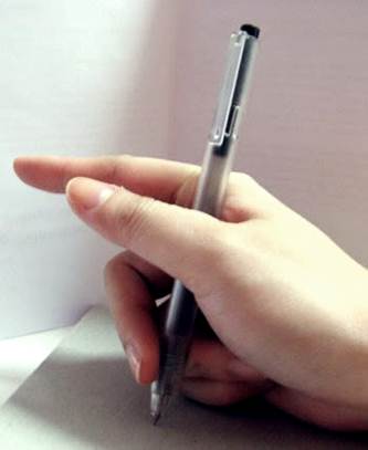 ยังคงจับปากกาไว้ในท่าที่ง่ายต่อการจะนำมาเขียนอย่าง