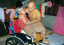 เรื่องราวของพระยอดกตัญญูเลี้ยงดูมารดาอัมพาตครั้งนี้ เมื่อวันที่ 6 ต.ค. ผู้สื่อข่าวได้รับแจ้งจากประชาชน ต.ปาดังเบซาร์ อ.สะเดา จ.สงขลา ว่า ที่สำนักสงฆ์ถ้ำนางพญาเลือดขาวโมกขธรรม ตั้งอยู่ในพื้นที่หมู่ 11 บ้านเขารูปช้าง ต.ปาดังเบซาร์ มีพระสงฆ์รูปหนึ่งมีความกตัญญูต่อบุพการี นำมารดาที่ชราและป่วยเป็นอัมพาต กับน้องชายที่สติไม่สมประกอบ มาเลี้ยงดูแลอย่างดีภายในกุฏิ เป็นที่ซาบซึ้งแก่ญาติโยมที่มาทำบุญภายในสำนักสงฆ์และพบเห็นอย่างมาก