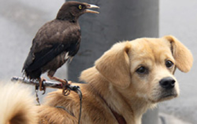 สุดท้ายตัดสินใจทำอานเล็กๆ ไว้บนหลังให้เกาะ ถ้าใครเข้ามาใกล้เจ้าเอี้ยงล่ะก็ โดนสุนัขเห่าตะเพิดกระเจิดกระเจิง ส่วนเวลาเจ้าสุนัขงีบ เจ้าเอี้ยงก็จะคอยจิกกินแมลงรบกวน และใช้เท้าหวีขนให้ซะด้วย