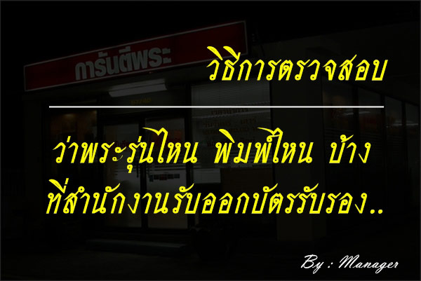 | หัวข้อกระทู้ : => วิธีการตรวจสอบว่า พระเครื่องรุ่นไหน พิมพ์ไหนบ้าง ที่สำนักงานรับออกบัตรรับรองได้แล้ว... |