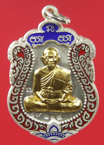 เหรียญหลวงพ่อคุณเนื้อเงินลงยา หน้าทองคำ หมายเลข