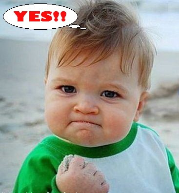 กำมือให้แน่น 2 ข้าง ยกแขนท่อนล่าง งอข้อศอกเป็นมุม 90 องศากับตัว ยืดหน้าขึ้น ตั้งใจ แล้วตะโกนคำว่า 'Yes' ดังๆ สัก 3 ครั้งซิ