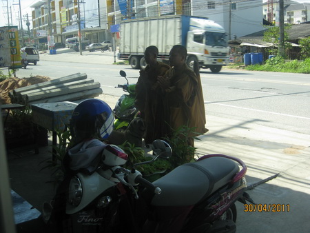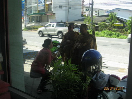 ไม่รู้เมื่อไหร่มันจะหมดไปเสียทีกับภาพเหล่านี้(จริงๆถ้าเราไม่ถ่ายซะอย่างมันก็ไม่มีภาพ)เห็นบ่อยมาก ยืนอุ้มบาตรรอตามหน้าร้านค้า