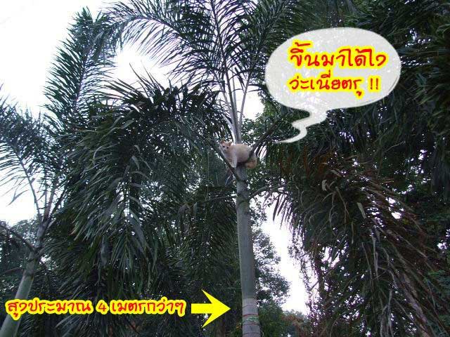 สูงเอาการครับ 4 เมตรกว่าๆ เกือบ 5 เมตรได้ คงติดอยุ่อย่างนั้นตั้งแต่ตี 4 แล้ว เรียกยังไงก็ไม่ลง น่าจะลงไม่ได้มากกว่า 55