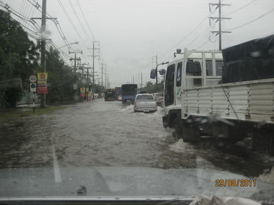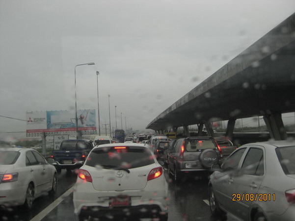 - ขาลงจาก บูรพาวิถี รถติดยาวเยียด สาเหตุจากจากน้ำท่วม ถนนใน อมตะ