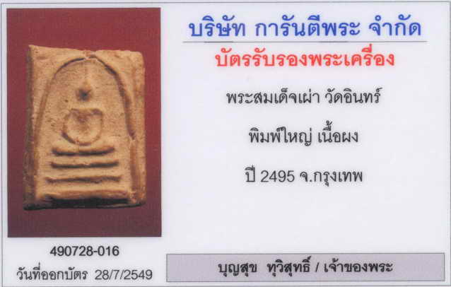 คือเรื่องของเรื่องผมซื้อพระมาพร้อมบัตรรับรอง แต่....บัตรหายไปแล้วอะครับ...เหลือแต่...ภาพถ่าย