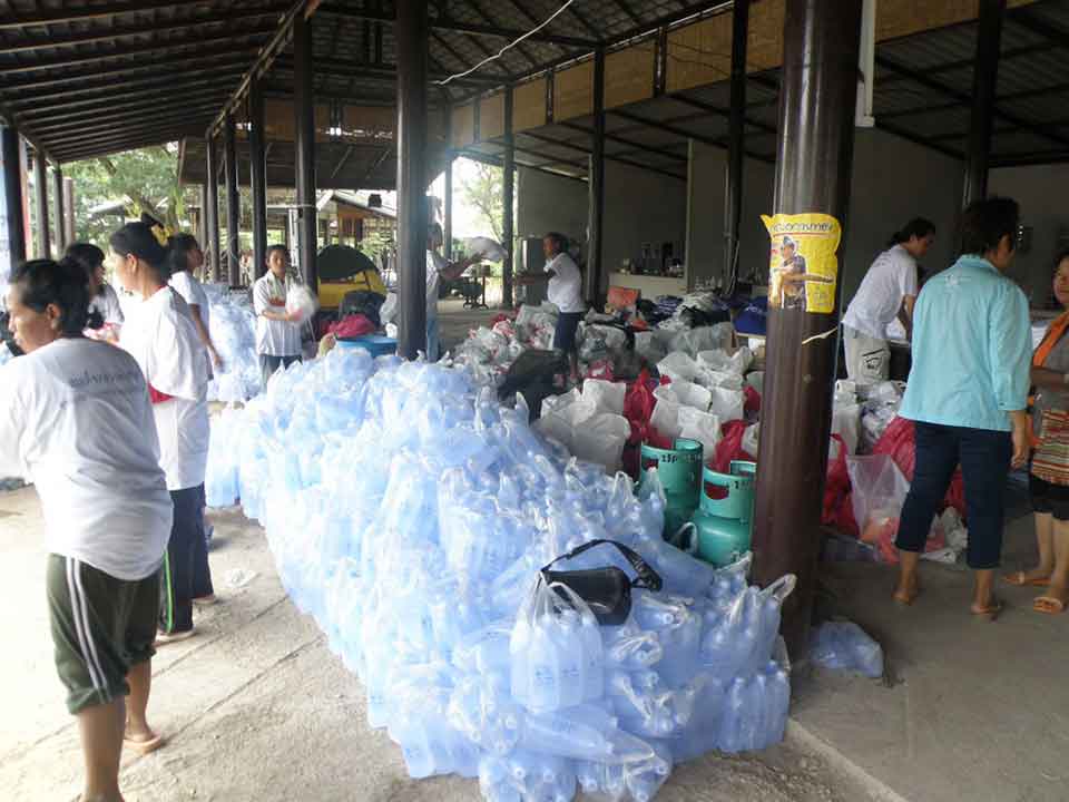 ยิ่งชาวบ้านที่ห่างจากถนนทางศูนย์ได้ตั้งโรงคร้ว 23 จุด ชาวบ้านช่วนกันปรุงอาหารให้ผู้ใหญ่ กำนัน เจ้าหน้าที่ อบต. และนายกลงเรือนำแจกจ่ายชาวบ้านทุกวันวันละ 3 มื้อพร้อมน้ำดืม ยังไปดูทึโรงครัวชาวบ้านต่างช่วยกันทำอาหารตั้งแต่ 05..-21.00 น. ทุกวัน พวกเราอยู่ด้านหลังที่นำไม่ท่วมช่วยกันซับน้ำตาผู้ที่ได้รับความทุกข์กันบ้างนะครับ