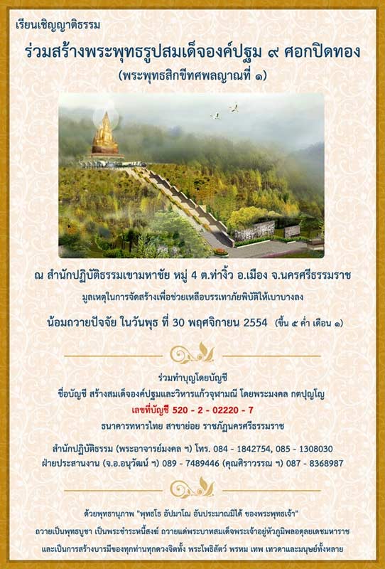 หัวข้อกระทู้ : บอกบุญสร้างพระยับยั้งภัยพิบัติ ถวายปัจจัย 30 พ.ย 54 นี้