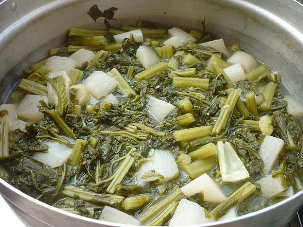 ภาพบนเป็นต้มหน่อไม้จีน ซึ่งต้มไว้ก่อนตั้งแต่คืนวันศุกร์ รวมถึงต้ม "คั่วฉ่าย" กับ "หัวไช้ท้าว"