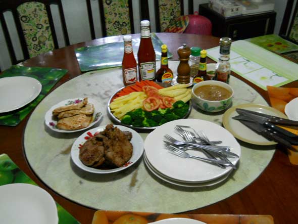 วันนี้วันเกิด หลานสาวปู่คนที่ 2 อายุครบ 19 ปีเต็ม พ่อ-แม่เค้าจัดเลี้ยงเล็กๆกินกันเองสำหรับคนในบ้าน 14 คน ... ขอบรรยายด้วยภาพครับ หลังจากผมอิ่ม จานหลักแล้ว มาทำรูปอวด แล้วจะไปเลิกถือศีลข้อที่ 5 ชั่วคราวต่อครับ