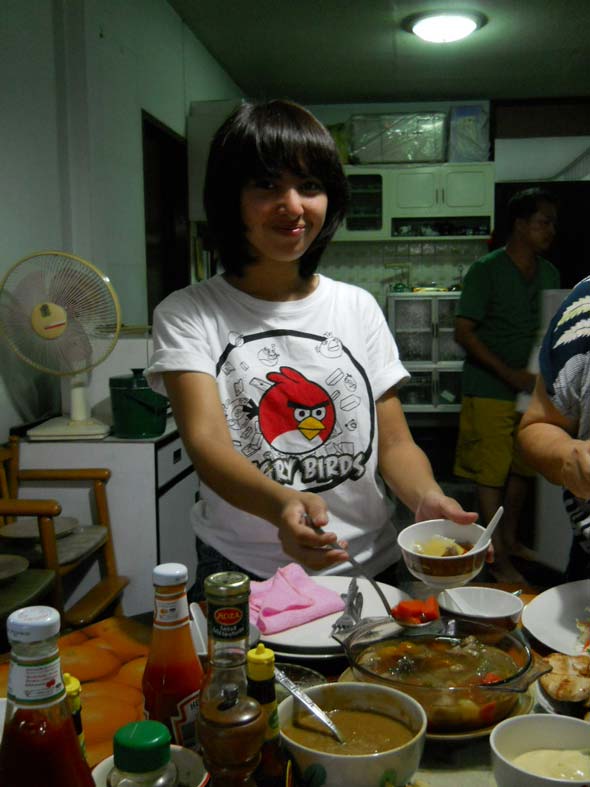 - รูปแรก หลานสาวเจ้าของวันเกิด ตักน้ำซุปใสเนื้อให้คุณปู่