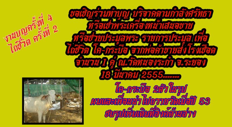 เรื่องคร่าวก็คือ........ตอนนี้ผมได้ตั้งงานบุญการกุศล ไถ่ชีวิตโค-กระบือ 1 คู่