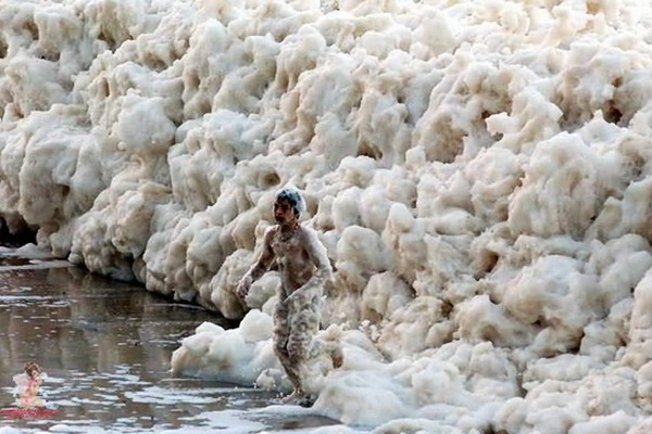 โดยนักวิทยาศาสตร์ได้อธิบายถึงสาเหตุของ ปรากฏการณ์ธรรมชาติ นี้ไว้ว่าเกิดจาก ความบังเอิญหลายอย่างที่ลงตัว ฟองโฟมเหล่านี้ไม่ได้เกิดสิ่ง สวยงาม แต่มันเกิดจาก สิ่งสกปรกต่างๆ ที่มนุษย์ได้สร้างขึ้น ทำให้ทะเลสกปรก , เกิดจากเกลือ , เกิดจากปฎิกริยาทางเคมี , การเน่าเปื่อยของซากพืช ซากสัตว์ในทะเล ปลา ที่เกิดจากน้ำเสียที่มนุษย์ไ้ด้สร้างขึ้น เมื่อทุกอย่างมารวมตัวกันด้วยส่วนผสมที่ลงตัว และมีคลื่นที่เคลื่อนตัวแล้วม้วนตัวลงก็จะทำให้เกิดฟอง และเมื่อคลื่นได้เคลื่อนมากระทบฝั่งจะคลายฟอง ออกมาสะสมอยู่ที่ริมชายหาดสะสมตัวขึ้นมากขึ้นเรื่อยๆ