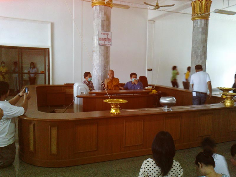 ไปถ่ายรูปท่านหลวงพ่อคูณที่หน้าวัดแล้วก็ถ่ายรูป ไปเรื่อยๆ จนเดินมาถึงอุโบสถ์ ก็เลยขึ้นไปดูเหรียญ ตะกรุด ฯลฯ ผมเดินไปเดินมา ก็ได้ยินเสียง บอกว่าวันนี้ท่าน หลวงพ่อจะออกมา ให้พร
