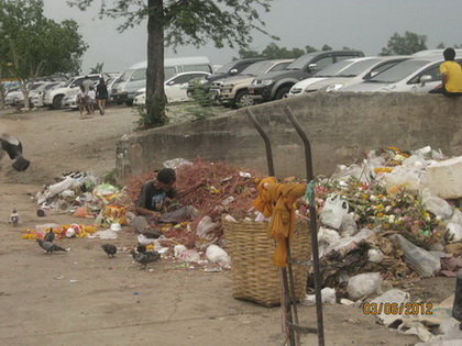 วัด ลพ.โสธร . . . Recycle บรุษผู้นี้กำลังคัดแยก เทียน ริปบิ้นสำหรับร้อยพวงมาลัย จะนำไปขายต่อหรือด้วยวิธีใดก็ตาม แต่จุดประสงค์ก็เพื่อนำกลับไปใช้ใหม่ใช้ที่ไหนยังไม่ทราบได้