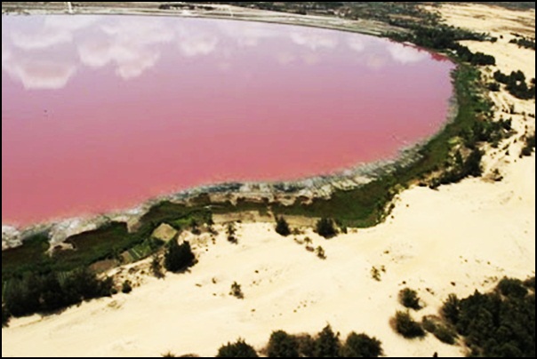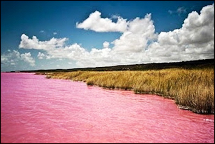 .....ทะเลสาบเร็ตบาในประเทศเซเนกัลกลายเป็นสีชมพูนมเย็น ซึ่งเกิดจากปฏิกิริยาเคมีของแบคทีเรีย Dunaliella Salina ที่ชอบอาศัยอยู่ในน้ำเค็มจัด.....