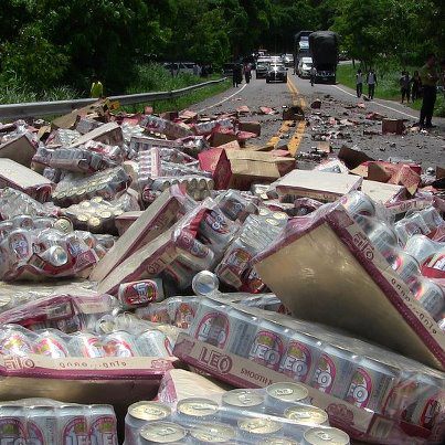 เมื่อเวลา ๑๒.๐๐ น.๑๐ กรกรฎาคม ๒๕๕๕ ได้เกิดเหตุรถบรรทุกเบียร์ลีโอ พ่วง 18 ล้อ ได้เทกระจาดเบียร์ยี่ห้อ ลีโอ ทั้งชนิดเป็นแพ๊คกระป๋อง และกล่องบรรจุขวดเบียร์ ทำให้หล่นเกลื่อนบนถนนเพชรเกษม ทางหลวงแผ่นดิน หมายเลข ๔ ระยะทางเกือบ 100 เมตร บริเวณหลักกิโลเมตรที่ กม.๕๘๙ บ้านหินดาด ม.๒ ต.ทรายแดง อ.เมืองระนอง ซึ่งการจราจรไม่สามารถสัญจรไปมาได้ ทั้งสองช่องการจราจร รถติดเป็นระยะทางยาวกว่า ๕ กิโลเมตร หน่วยกู้ชีพ กู้ภัย อบต.บางแก้ว พร้อมอาสาสมัครได้เร่งช่วยกันเก็บกวาด เนื่องจากมีเศษขวดเบียร์แตก จนต้องร้องขอสนับสนุนรถน้ำจาก อบต.ทรายแดง เพื่อมาฉีดทำความสะอาดถนน จนสามารถเปิดพื้นผิวการจราจรได้เมื่อเวลาประมาณ ๑๔.๐๐ น.