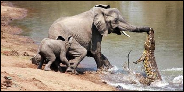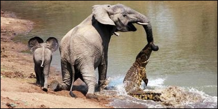 ภาพ นาทีระทึก แม่ช้างและลูกช้าง มากินน้ำที่ แม่น้ำ ทั้งสองต้องมาเจอกับเรื่อง ที่น่าตกใจ นั่นก็คือ จรเข้ได้กัดงวงแม่ช้าง และพยายามลากลงไปในแม่น้ำ ทั้งคู่พยายามยื้อยุดฉุดกระชากกันไปมา ตัวแม่ช้างไม่ยอมแพ้ และพยายามหันตัวเอง ออกจากแม่น้ำ