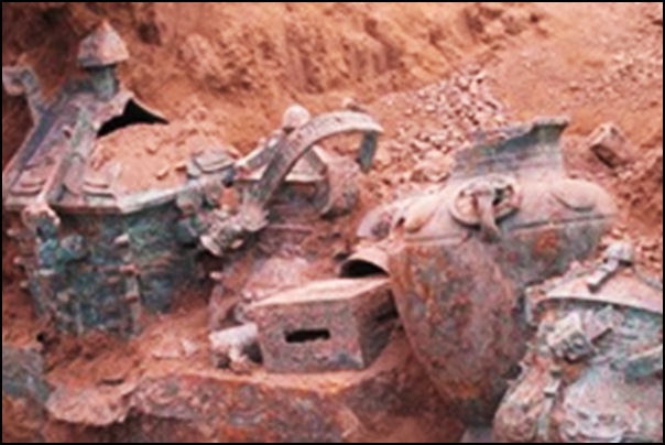 พบเครื่องบรอนซ์ อายุเก่าแก่ ถึง 3,000 ปี กว่า 20 ชิ้น ภายใน สุสาน ของชนชั้นสูง ยุคซีโจว ตอนต้น ที่หมู่บ้าน จุ่ยโถวชุน ตำบลสือกู่ เมืองเป่าจี มณฑลส่านซี...แต่ตะลึงสุดๆ เมื่อยังมีแกงบรรจุอยู่ในเครื่องบรอนซ์