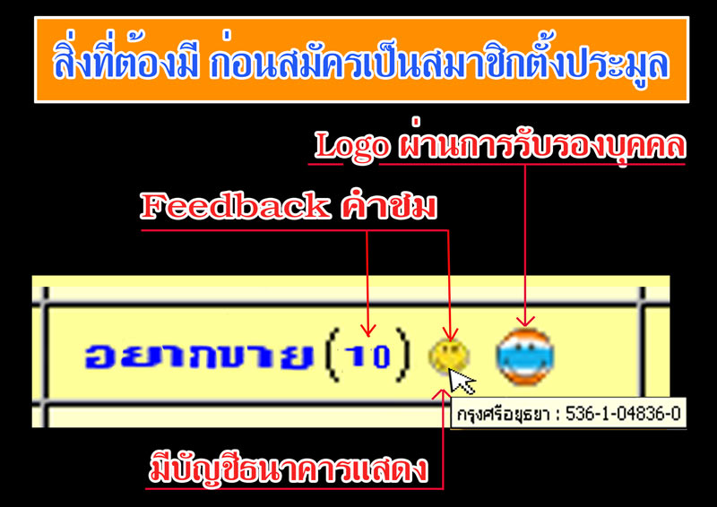 ** ซึ่งจากข้อบังคับข้อนี้ ก็เพื่อที่จะกลั่นกรองสมาชิกที่จะมาทำการขาย ให้เป็นผู้ที่มีตัวตนจริง ตามเอกสารที่ได้ทำการสมัครสมาชิกไว้ ไม่ใช่มิจฉาชีพ ที่นำเอกสารปลอมแปลงมาสมัคร เพื่อตั้งประมูลหลอกขาย จนสมาชิกที่ซื้อได้รับความเดือดร้อน