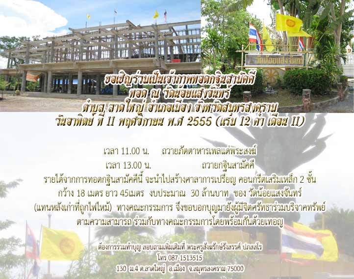 (แทนหลังเก่าที่ถูกไฟไหม้) ทางคณะกรรมการ จึงขอบอกบุญมายังผู้มีจิตศรัทธาร่วมบริจาคทรัพย์