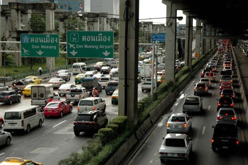 ในแยกจราจรหลัก มีอัตราความเร็วของรถยนต์ลดลงและต้องใช้เวลาเดินทางนานขึ้นประมาณ 30 นาที 1 ชั่วโมง โดยมีผลจากรถคันแรก ซึ่งอ้างอิงจากการจดทะเบียนรถใหม่ที่เพิ่มขึ้น นอกจากนี้ช่วงเวลาเร่งด่วน ถนนที่พบว่ามีปัญหามากคือ สีลมกับสามเสน