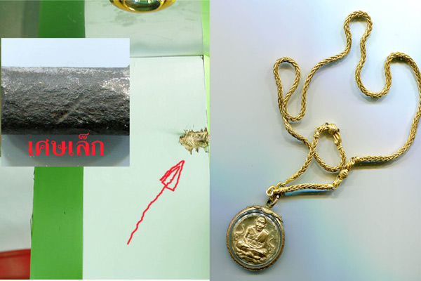 ผมว่าผมรอดเพราะดวงผม..กับสิ่งศักดิ์สิทธ์...หลวงปู่ทวดครับ... เมื่อวันที่ 17 เกิดเหตุระเบิดที่ปัตตานี..ซึ้งผมอยู่ร้านถ่ายรูป ห่างจากจุดเกิดเหตูประมาณ...25-30 เมตร..เสียงดังตูม..กระจกที่ร้านแตกทันที 3 บาน...ผมเช็คตัวเองไม่เป็นรัยปัดฝุ่นและเศษกระจกเล็กๆออกจากตัวหยิบกล้องถ่ายรูปออกไปถ่ายก่อนเลย...ตอนนั้นไม่ค่อยมีครัย..กลับเข้ามาเช็คในร้าน ..ที่เสาผมทำลูกศรไว้..เศษสะเก็ดระเบิดกระเด็ฯทะลุกระจกเข้ามาโดนเสาตามรูป ผ่านหัวผมไป 1 ฟุตเอง..เอามือจับหลวงปู่ทวดแล้วยกมือไว้ทันทีครับ...ไม่เชื่อก้อต้องเชื่อ..เศษเหล็กในรูปเล็ก..ตัดขาขาดเลยนะครับ...(..มาเล่าสู่กันฟังนะครับ..ผมไม่ได้เชียร์พระนะครับ...ขออนุญาตฺ เวบมาสเตอร์ ลงภาพเหตุการณ์..ที่ผมถ่ายได้ สดๆๆ นะครับ |