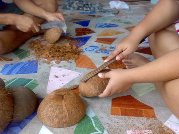 ลูกตอบเล่นกะลา ขัดแล้วทา น้ำมันไว้