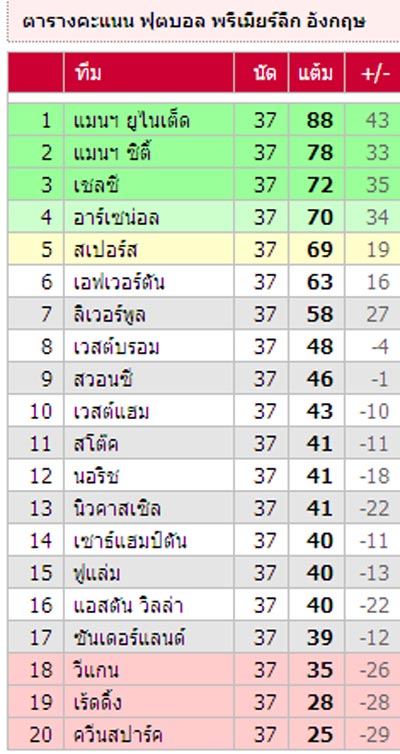 *** ตารางคะแนนก่อนนัดสุดท้ายสั่งลา ตามที่ copy ไว้ข้างต้นครับ ... หลังจากคืนนี้แล้ว พักไป 2 เดือนกว่า แล้วกลับมาลุ้นฤดูใหม่กันนะครับ ... สวัสดีครับ *** |
