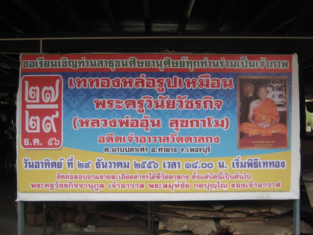ขอเชิญร่วมเป็นเจ้าภาพเททองหล่อรูปเหมือน พระครูวินัยวัชรกิจ ( หลวงพ่ออุ้น สุขกาโม ) อดีตเจ้าอาวาสวัดตาลกง