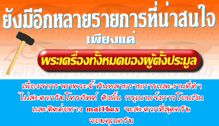 ส่วนภาพพระ หรือภาพข้อมูลพระต่าง ๆ อะไรก็ตามที่อยู่ในรายการของ เนตรชนก สามารถนำไปใช้งานได้เลยค่ะ หากมิได้เป็นไปในทางทุจริต.....ขอบคุณค่ะ