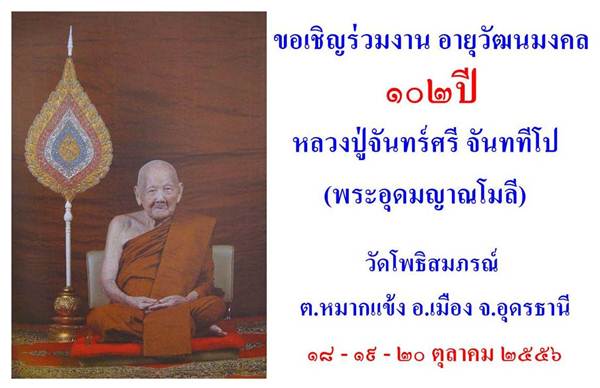 ขอเชิญร่วมงานอายุวัฒนมงคล 102 ปี พระอุดมญาณโมลี