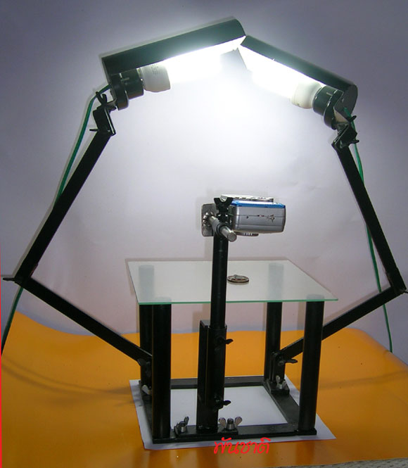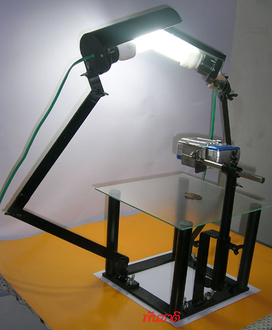 จากภาพจะเห็นว่าวางพระบนแผ่นกระจกในแนวนอน และติดตั้งกล้องขนานกับองค์พระโดยมีกระดาษขาวเป็นพื้นอยู่ด้านล่าง