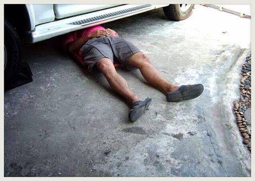 เมีย: อ้าวพี่ไม่ได้นอนซ่อมรถอยู่หรือจ๊ะ