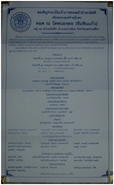 *** ขอเรียนเชิญทุกท่านร่วมทำบุญเป็นเจ้าภาพทอดผ้าป่าสามัคคี เพื่อสมทบทุนสร้างอุโบสถ ณ.วัดหนองตอ (ซับหินแก้ว) อ.ปากช่อง จ.นครราชสีมา ***