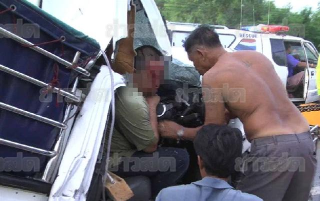 กระบะบรรทุกปลาชนเก๋ง หนุ่มดับคารถ-ค้นตัวเจอยาไอซ์ ชาวบ้านดอดขนปลาขณะคนขับเจ็บในรถ...!!!