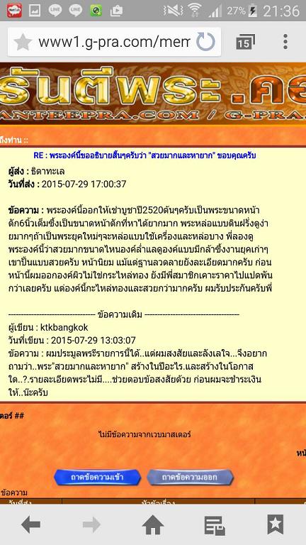 ผมเป็นสมาชิกเวปมา8ปีมีfeedbackพันกว่าๆไม่เคยให้คำติใครเลยครับ โดนมาทั้งยกเลิกการชนะประมูลมาก็หลายครั้ง แต่เคสนี้ผมมีความรู้สึกว่าท่านที่ชนะประมูลตั้งใจที่จะไม่เช่าหรือรับพระองค์นี้อยู่แล้ว...แต่เคาะพระที่แดงอยู่แล้วทำไม ตั้งคำถามแบบแปลกๆเพื่ออะไร ผมจึงอยากถามพี่ๆว่าผมควรให้คำติดีหรือเปล่าครับ(ครบกำหนดไม่โอนเงิน7วันตามกฎ) เพราะปรึกษาพี่ๆที่รู้จักกันบอกว่าสมควรให้คำติเพราะการตั้งคำถามจงใจยียวนชัดเจนแล้วทำให้เราเสียโอกาส(ในสภาวะเศษฐกิจเช่นนี้) เสียหน้าพระเพราะลงพระครั้งใหม่ทั้งๆที่พระมีการชนะประมูลไปแล้วและไม่ให้คำติแต่กลับนำพระองค์เดิมมาลงตั้งประมูลใหม่ ผมเลยอยากรบกวนปรึกษาพี่ๆทุกท่านก่อนจะดำเนินการต่อไปครับ พร้อมกันนี้ผมได้คอปภาพมาเพื่อให้พี่ๆช่วยพิจารณาด้วย...ขอบพระคุณพี่ๆทุกท่านที่แสดงความคิดเห็นครับผม |