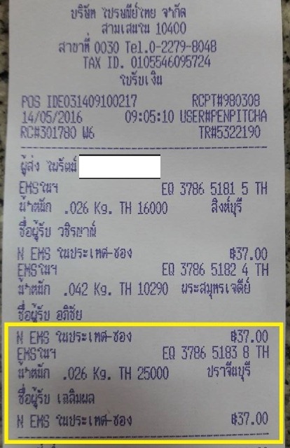 ตาม bill ไปรณีย์ ที่ วงสีเหลืองเอาไว้