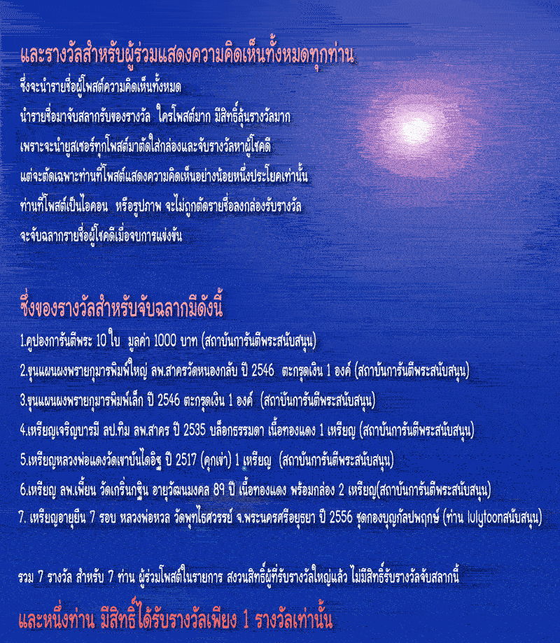 | หัวข้อกระทู้ : วันนี้ครับ จับรางวัลผู้ร่วมสนุกกับเกมส์ "แฟนพันธ์แท้พระเครื่องการันตีพระ" ในโหลยาดอง. |